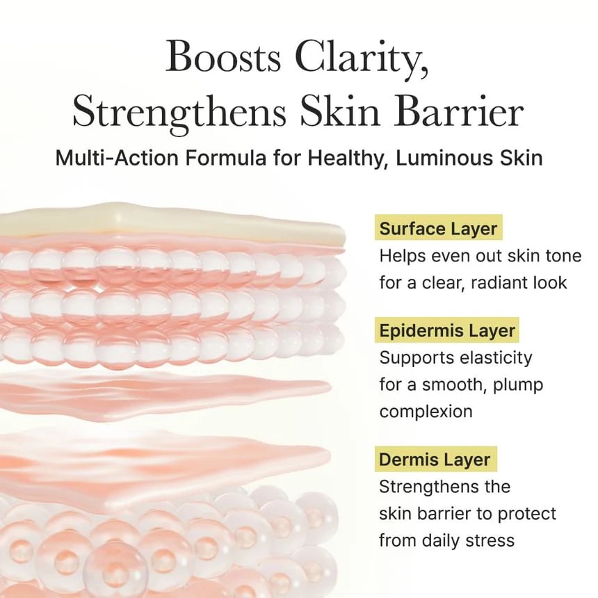 Enriched with Glutatione to help reduce the appearance of blemishes and hyperpigmentation.